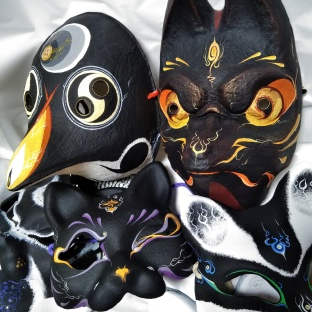 妖怪テーマのモチーフを中心に取り扱い、装着すると勇気や力が湧いてくるようなお面を目指して制作、活動しています。